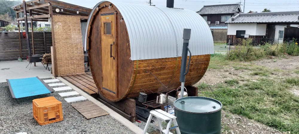 | 檜バレルサウナ | 朝8時〜夜19時までの2時間予約制で、1回4名まで利用可能、サウナ仲間を増やしたいだけなので薪代と井戸掘り資金の1部だけ頂戴しています。 |