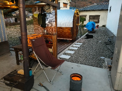 まだ水道水とドラム缶ですがもうすぐ井戸を掘りますので冷た~い水風呂を堪能して頂けるようになります。