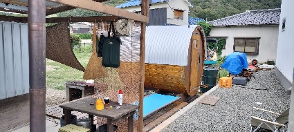 まだ水道水とドラム缶ですがもうすぐ井戸を掘りますので冷た~い水風呂を堪能して頂けるようになります。